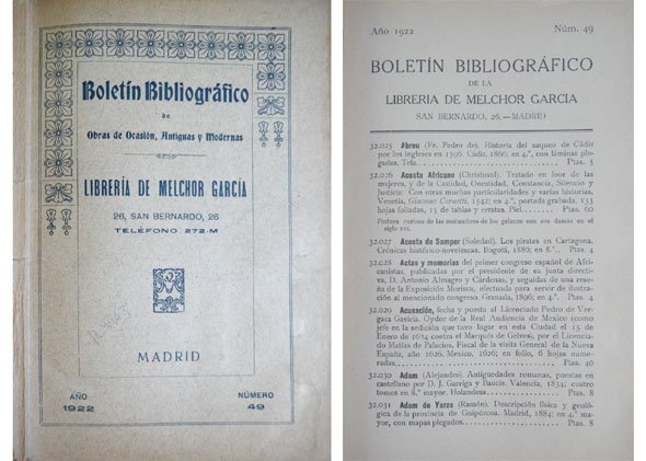 Boletín Bibliográfico de la Libreria de Melchor García. Número 49.