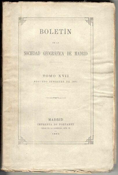 Boletín de la Real Sociedad Geográfica de Madrid. Tomo XVII. Segundo semestre de 1884