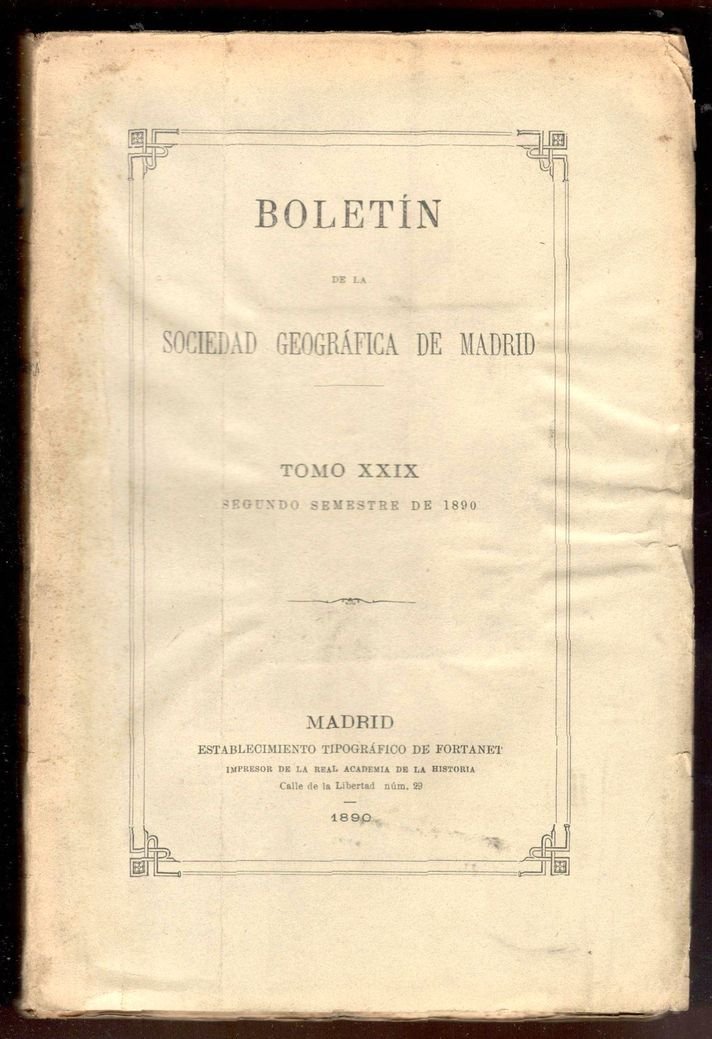 Boletín de la Real Sociedad Geográfica de Madrid. Tomo XXIX. Segundo semestre de 1890