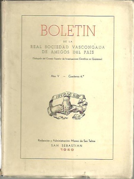 BOLETIN DE LA REAL SOCIEDAD VASCONGADA DE LOS AMIGOS DEL PAIS. AÑO V. CUADERNO 4.