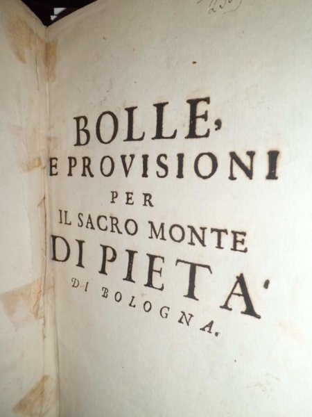 BOLLE, e PROVISIONI per il sacro Monte di Pietà di Bologna