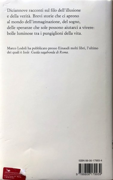 Diciannove racconti sul filo dell'illusione e della verità. Brevi storie che ci aprono al mondo dell'immaginazione, del sogno, delle speranze che sole possono aiutarci a vivere: bolle luminose tra i pungiglioni della vita.