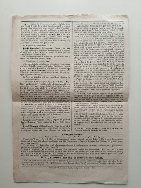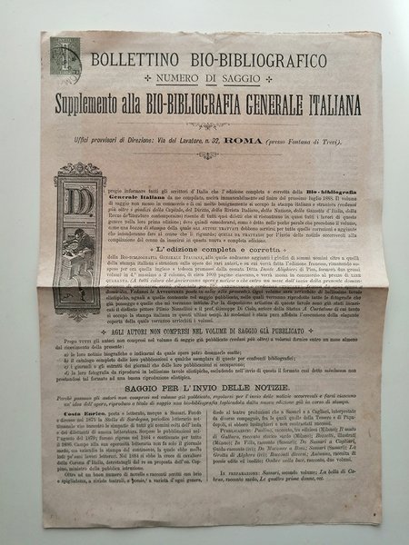 Bollettino Bio Bibliografico. Numero di saggio. Supplemento alla Bio-Bibliografia generale italiana