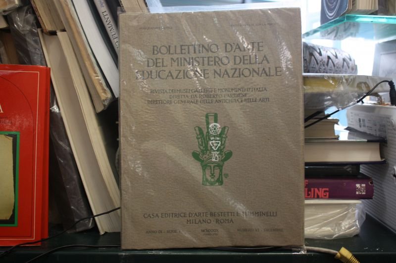 Codice 945, , OLLETTINO D'ARTE DEL MINISTERO DELLA EDUCAZIONE NAZIONALE Rivista dei Musei Gallerie e Monumenti d'Italia diretta da Roberto Paribeni Direttore Generale delle Antichità e Belle Arti Casa editrice d'Arte Bestetti e Tumminelli Anno IX - Serie I - MCMXXIX (A. VIII) - Numero VI Dicembre bross. ed. 122,5 x 29,5 cm pag. (8) + da 240 a 288 b/n Stato di conservazione: OTTIMO! Sommario: Antonio Morassi - I pittori alla Corte di Bernardino Clesio a Trento, con 20 illustrazioni Olga Elia - Di due pannelli decorativi pompeiani con figure in "Opus sectile" ad intarzio, con 6 illustrazioni Clinio Cottafavi - R. Palazzo Ducale di Mantova - I gabinetti della "Paleologa", con 12 illustrazioni