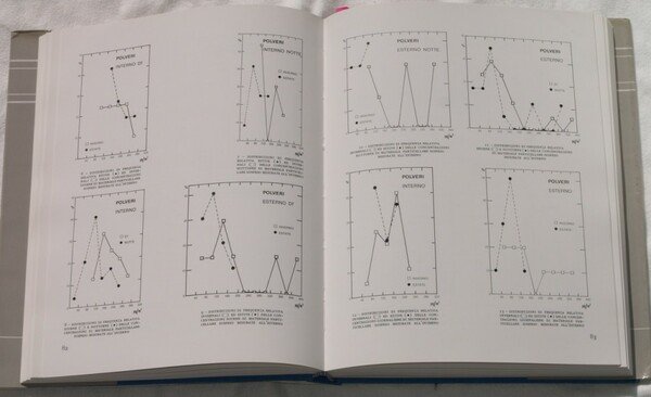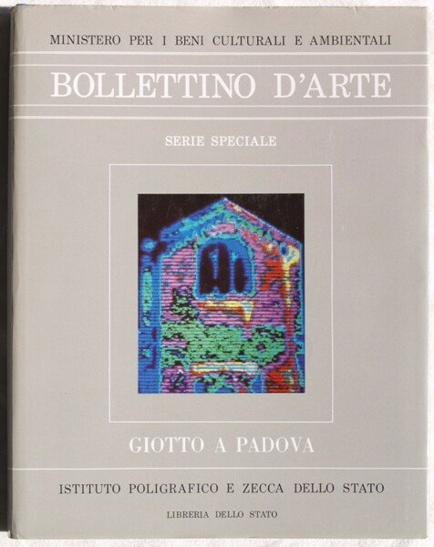 In 4. Dim. 29x23 cm. Pp. 249. Interessante opera completa in un volume del 1982, serie speciale 2 del 1982 dei Bollettini d'arte. Il volume è dedicato agli studi sullo stato di conservazione della cappella degli Scrovegni a Padova. Presenti diversi testi: Giotto a Padova, Fattori ambientali e stato di conservazione dei dipinti murali della Cappella degli Scrovegni; l'indagine sugli inquinanti atmosferici all'interno e all'esterno della cappella; fattori ambientali e depositi di particelle sui dipinti murali; distribuzione della temperatura superficiale sugli affreschi; microclima all'interno della Cappella: scambi termodinamici tra gli affreschi nell'ambiente; indagine relativa alla carica microbica dei dipinti murali; ricerca dei solfobatteri negli intonaci dei dipinti murali; l'aerobiologia degli spazi confinati di interesse artistico. Numerose foto a colori ed in bianco e nero nel testo. In ottime condizioni. Brossura editoriale in ottime condizioni generali con lievi usure ai margini e dorso. Interesting complete work in one volume of 1982, special series of 1982 of the Bollettini d'arte. The volume is dedicated to the state of preservation of the chapel of Scrovegni in Padoa. Different coloured and black and white photoes in the text. In very good conditions. Editorial cover in very good general conditions slightly worn in the edges and spine.
