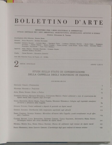 BOLLETTINO D'ARTE 2 SERIE SPECIALE STUDI SULLO STATO DI CONSERVAZIONE DELLA CAPPELA DEGLI SCROVEGNI IN PADOVA