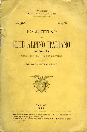 Bollettino del Club Alpino Italiano per l'anno 1891 pubblicato per cura del Consiglio Direttivo. Vol. XXV. Num. 58. Supplemento alla Rivista del C. A. I. per l'anno 1891