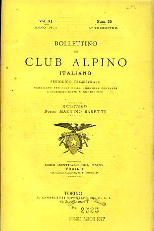 Bollettino del Club Alpino Italiano. Periodico trimestrale pubblicato per cura della Direzione centrale e distribuito gratis ai soci del Club. Vol. XI. N. 30. 2° trimestre