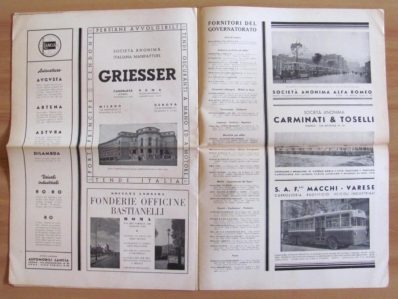 Periodico Mensile del Governatorato di Roma - Anno I - N.9 - Giugno 1936. Direttore Giuseppe Bottai. Illustrazioni fotografiche in b/n n.t. e belle pagine pubblicitarie. Ist. Arti Grafiche Tumminelli & C. - Roma, 1935. Interessantissima Rivista con apertura a giornale con avvenimenti, opere, cronache e rapporti. Sommario in copertina. Minime fioriture del tempo al margine alto della copertina. Chiusa 24x32 - Aperta 32x47,5; pp.16. Rara e in Ottimo stato. , Ottimo (Fine)