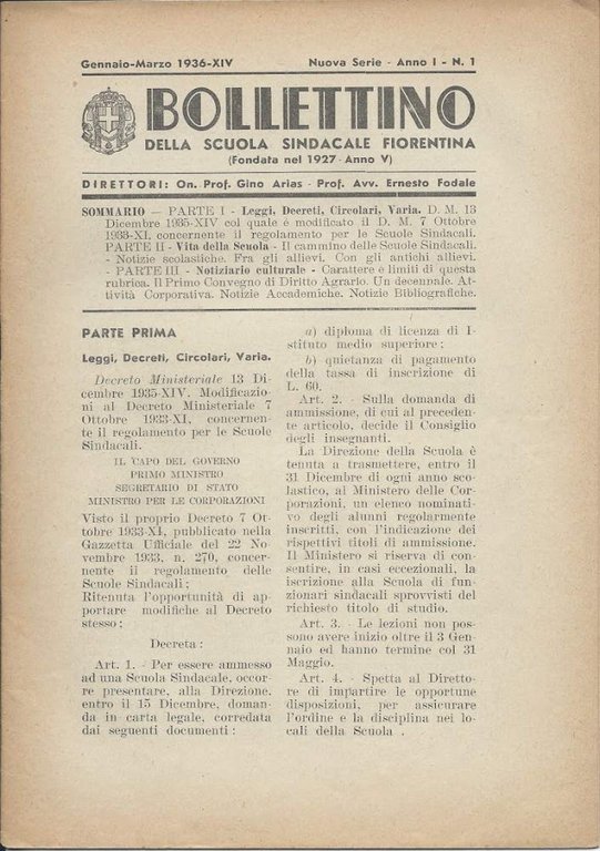 BOLLETTINO DELLA SCUOLA SINDACALE FIORENTINA (Fondata nel 1927 - Anno V) (1936)