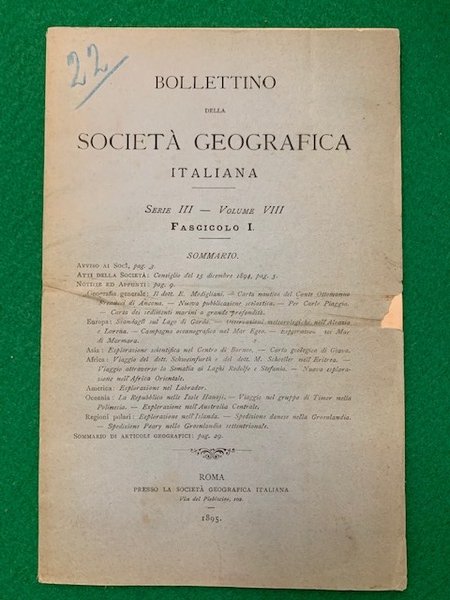 BOLLETTINO DELLA SOCIETÀ GEOGRAFICA ITALIANA. ITALIANA. SERIE III - VOLUME VIII, FASCICOLO I. - 1895