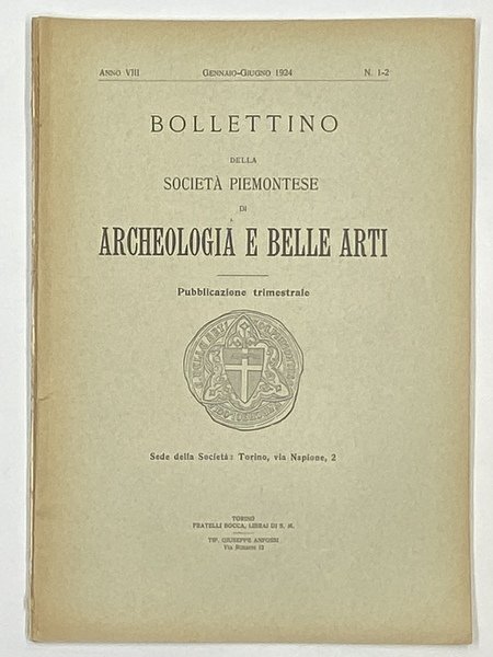 Bollettino della Società Piemontese Archeologia e Belle Arti. Anno VIII N. 1-2 Gennaio-Giugno 1924.