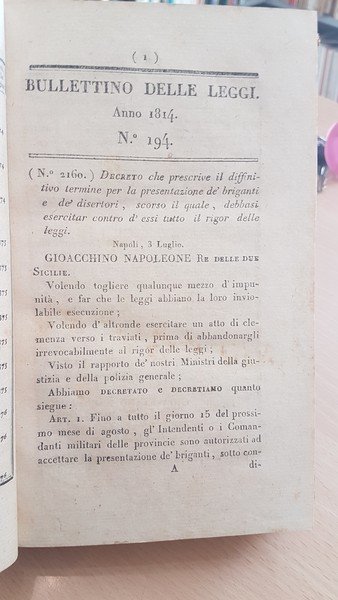 Bollettino delle leggi del Regno di Napoli secondo semestre da Luglio a Dicembre 1814