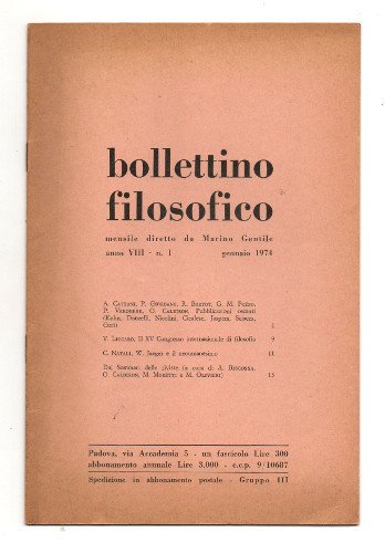 BOLLETTINO FILOSOFICO. ANNO VIII. MENSILE DIRETTO DA MARINO GENTILE