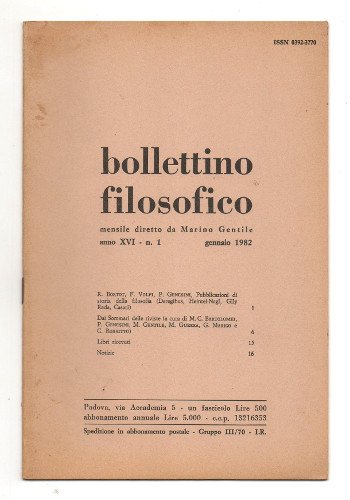 BOLLETTINO FILOSOFICO. ANNO XVI. MENSILE DIRETTO DA MARINO GENTILE
