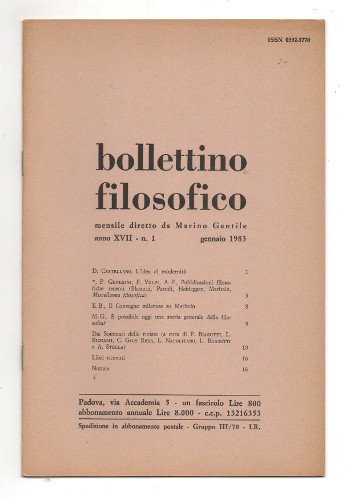 BOLLETTINO FILOSOFICO. ANNO XVII. MENSILE DIRETTO DA MARINO GENTILE