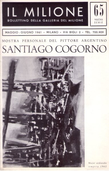 *Bollettino Mostra personale del pittore argentino SANTIAGO COGORNO. Galleria del Milione - Milano. Maggio-giugno 1961