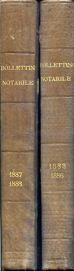 6 annate (a partire dal numero 1 dell'anno 1, datato 15 aprile 1883) di questa pubblicazione quindicinale del notariato italiano in 2 voll. in-4° piccolo, pp. IV, 144 [paginazione continua fra i vari numeri, ognuno dei quali varia dalle 8 alle 16 pp.]; VI, (2), 190; VIII, 192; VIII, 192; VIII, 376; VIII, 376; legatura primonovecentesca m. percallina con titolo in oro ai dorsi. Testo bicolonne. Alla prima pag. di alcuni numeri è presente un francobollo con annullo del tempo. Ottimo stato. A partire dal 1888 il periodico, il maggiore fra quanti dedicati al notariato italiano nel secondo Ottocento, muta il sottotitolo in: 'Ufficiale pei Distretti Notarili delle Corti d'Appello di Torino e Casale Monferrato (Acqui, Alba, Alessandria, Aosta, Asti, Biella, Bobbio, Casale, Ivrea, Novara, Novi, Pallanza, Pinerolo, Susa, Tortona, Vercelli, Vigevano e Voghera).