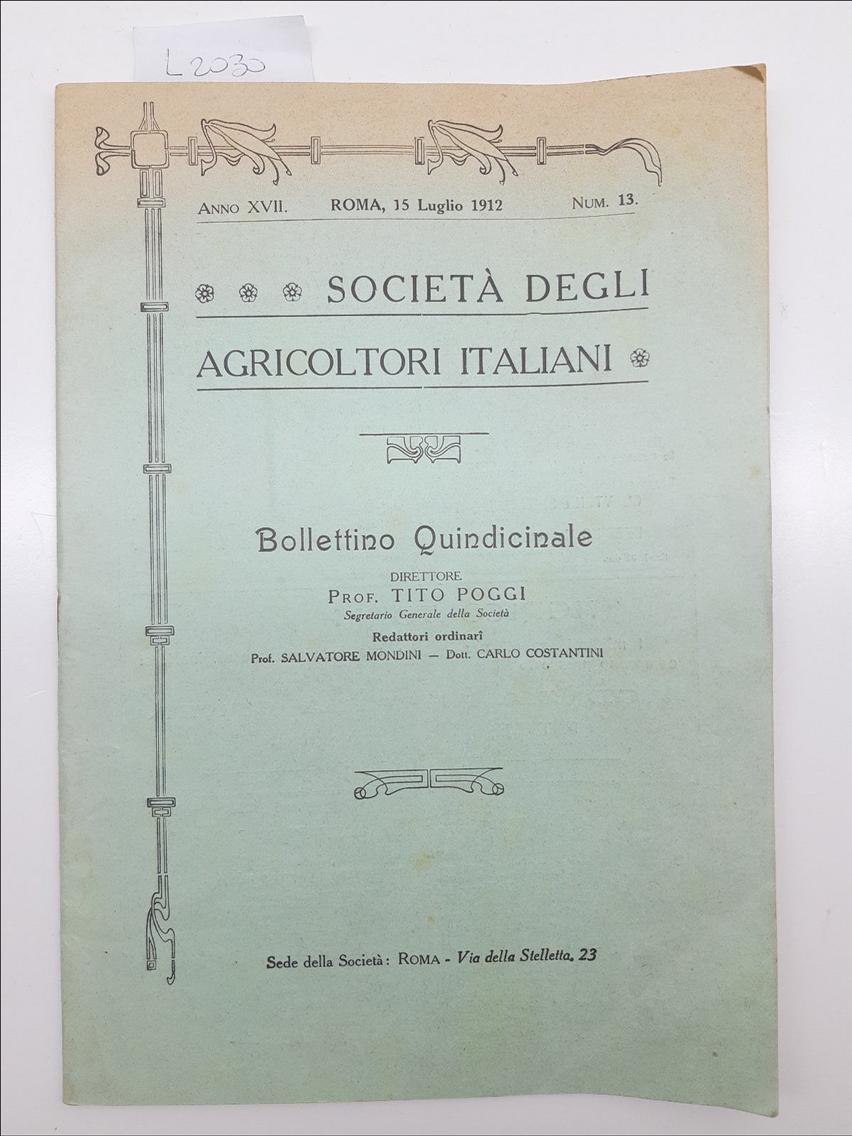 Bollettino quindicinale della Societ‡ degli Agricoltori italiani n. 13 Roma 1912