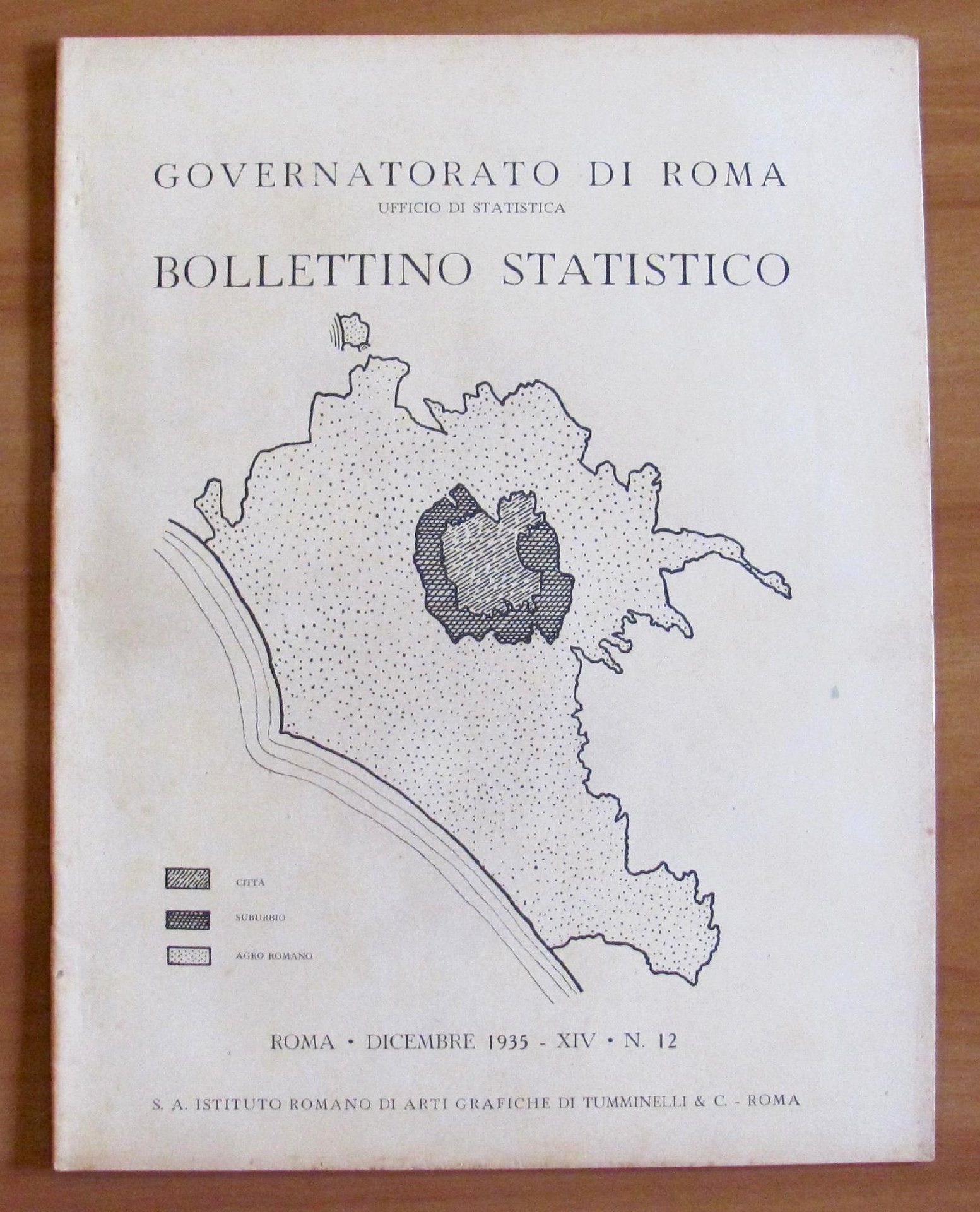 Ufficio di Statistica, Roma - N.12 - Dicembre 1935. Ist. Arti Grafiche Tumminelli & C. - Roma, 1935. Rivista in brossura editoriale. 23x30; pag. da 425 a 456. Raro e in Ottimo stato. , Ottimo (Fine)