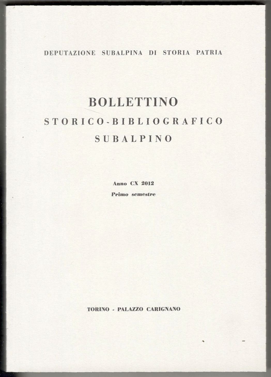 Bollettino storico-bibliografico subalpino. Anno CX 2012 - Primo semestre (Gennaio- Giugno 2012)