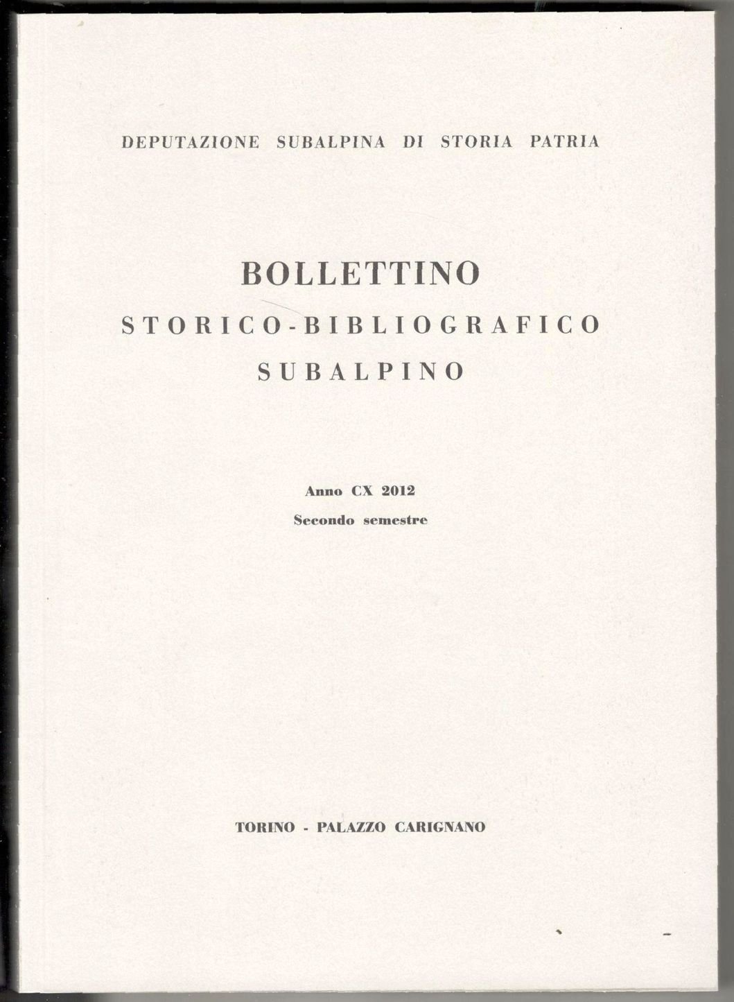 Bollettino storico-bibliografico subalpino. Anno CX 2012 - Secondo semestre (Luglio - Dicembre 2012)