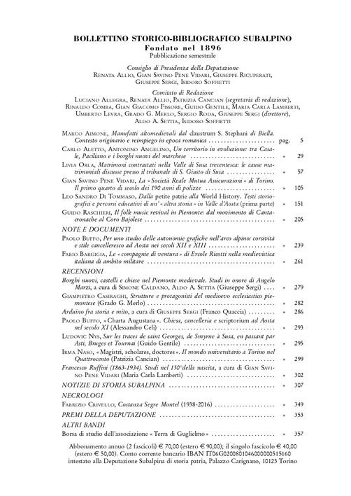 Bollettino storico-bibliografico subalpino. Anno CXVII 2019 - Primo semestre (Gennaio- Giugno 2019)