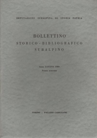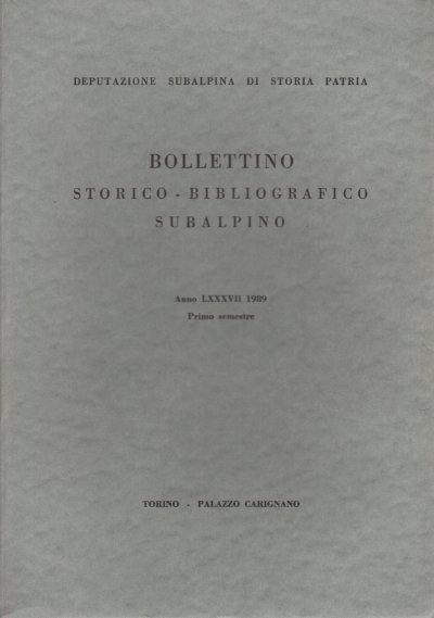Bollettino storico-bibliografico subalpino Anno LXXXVII 1989. Primo semestre