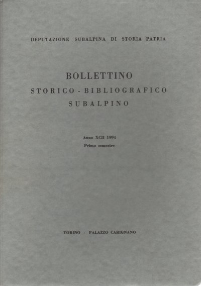 Bollettino storico-bibliografico subalpino Anno XCII 1994. Primo semestre
