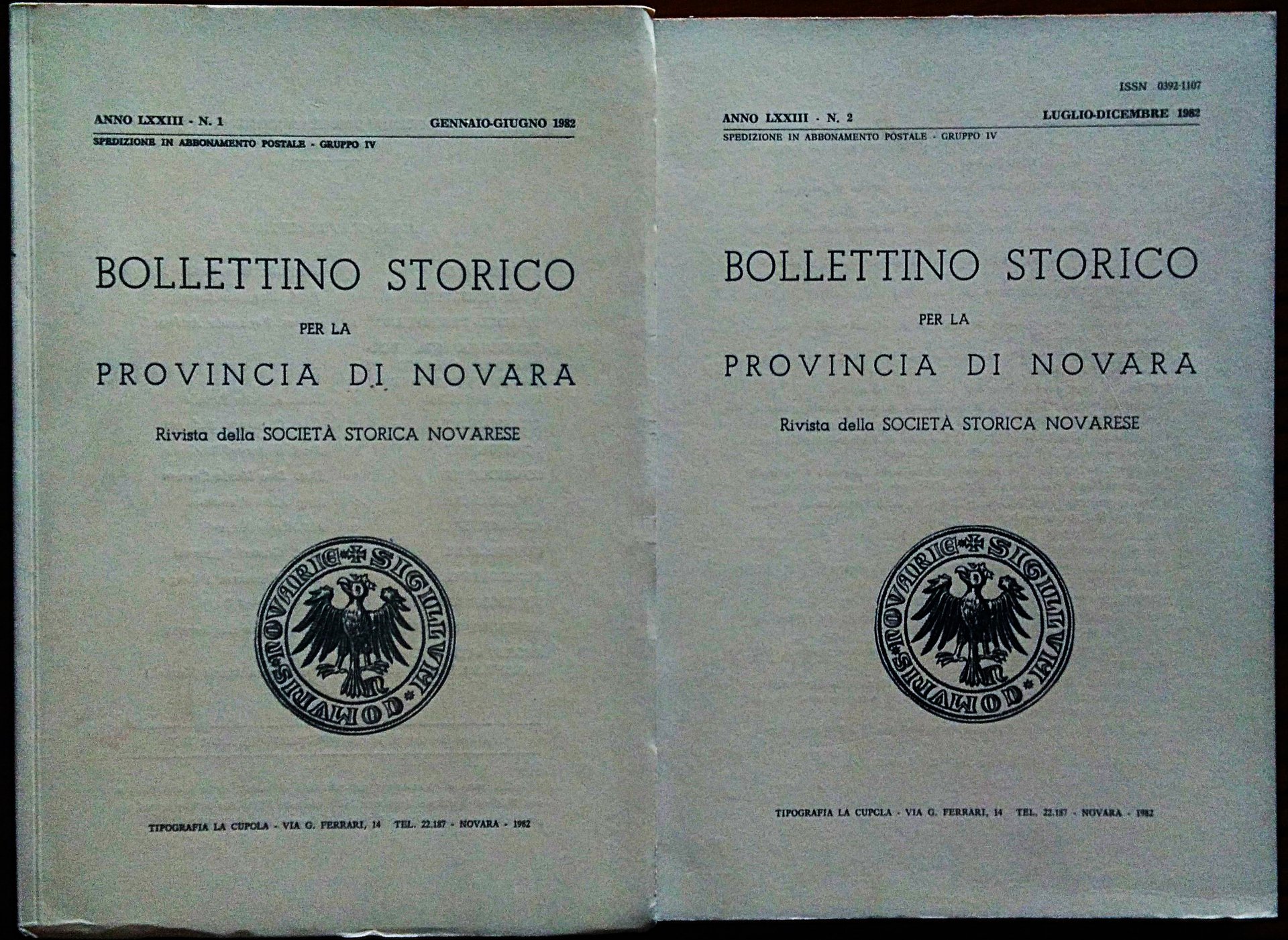Bollettino storico per la provincia di Novara - Rivista della società storica novarese - Anno LXXIII, N. 1 e 2, 1982. Annata completa.
