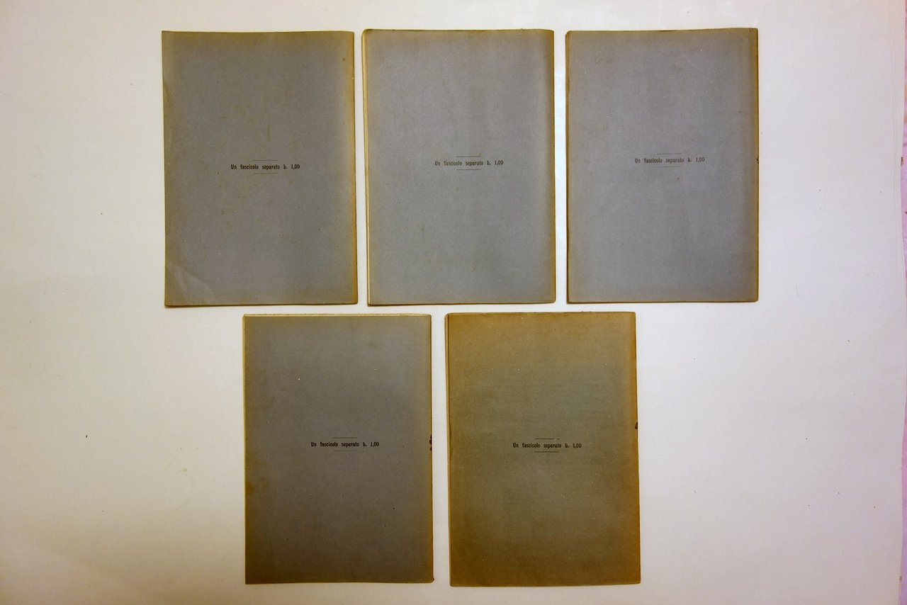 AA. VV., Bollettino Storico Piacentino direttore ed amministratore Dott. Stefano Fermi Anno IX - fascicoli 1-5 gennaio - ottobre 1914 5 fascicoli; Premiata Tip. Edit. A. del Maino, Piacenza 1914; cm 24,5x17; pp. complessive 240 (esemplari autonomi con numerazione progressiva annuale). Cartoncino ed. Completi Condizioni di conservazione Fascicoli tutti in buone condizioni con tracce d'uso, leggeri marginali accenni di ingiallimento dovuti al tipo di carta, lieve foxing. Interni buoni. Cinque fascicoli completi. Per maggiori dettagli sul contenuto vedi foto indice. SETT4.L22276 N