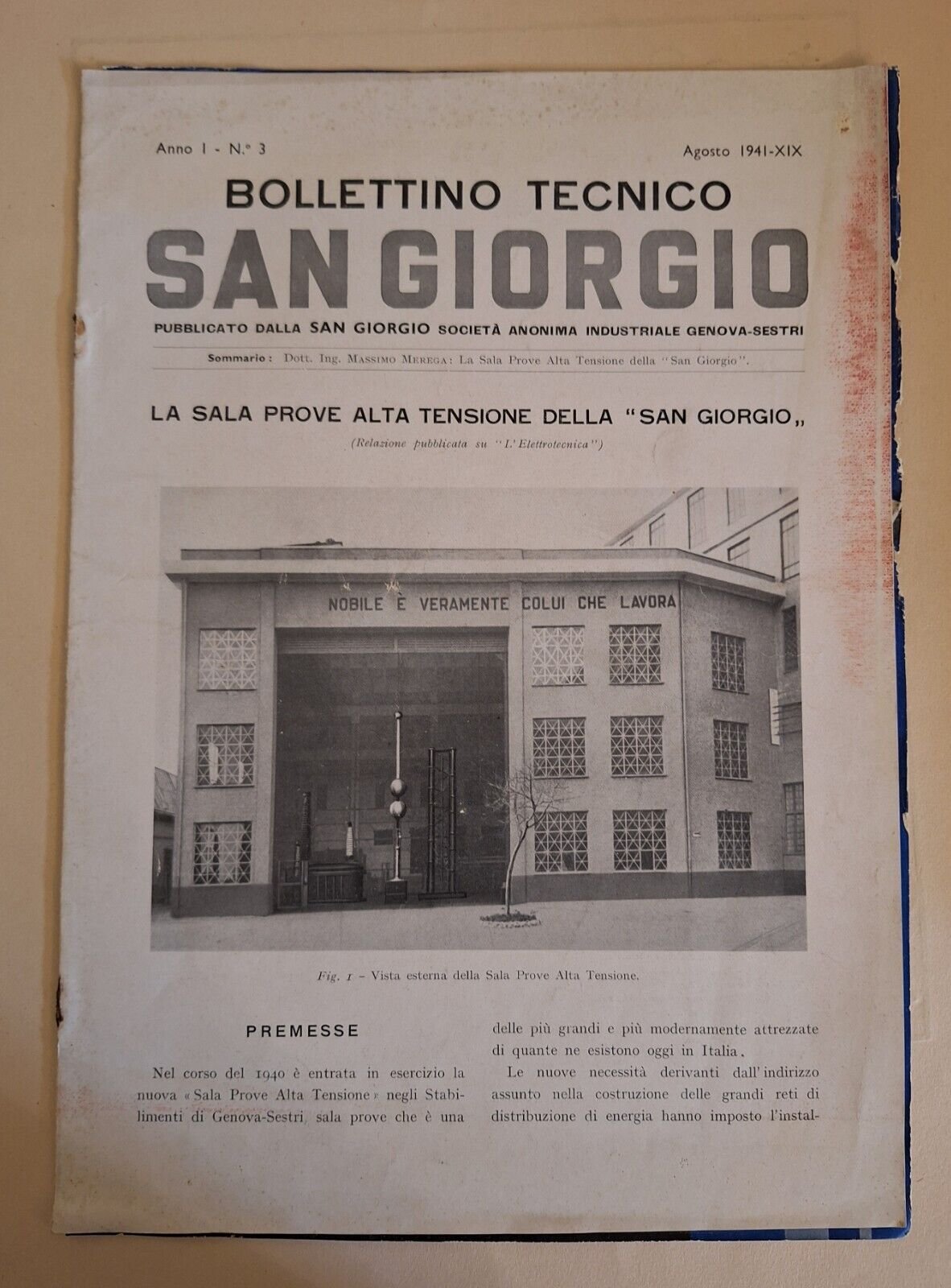 BOLLETTINO TECNICO SAN GIORGIO ANNO 1° N. 3 In 4°, legatura editoriale con graffetta, pag. 12, copertina illustrata.Lievissimi segni alla copertina, pagine fresche e pulite.