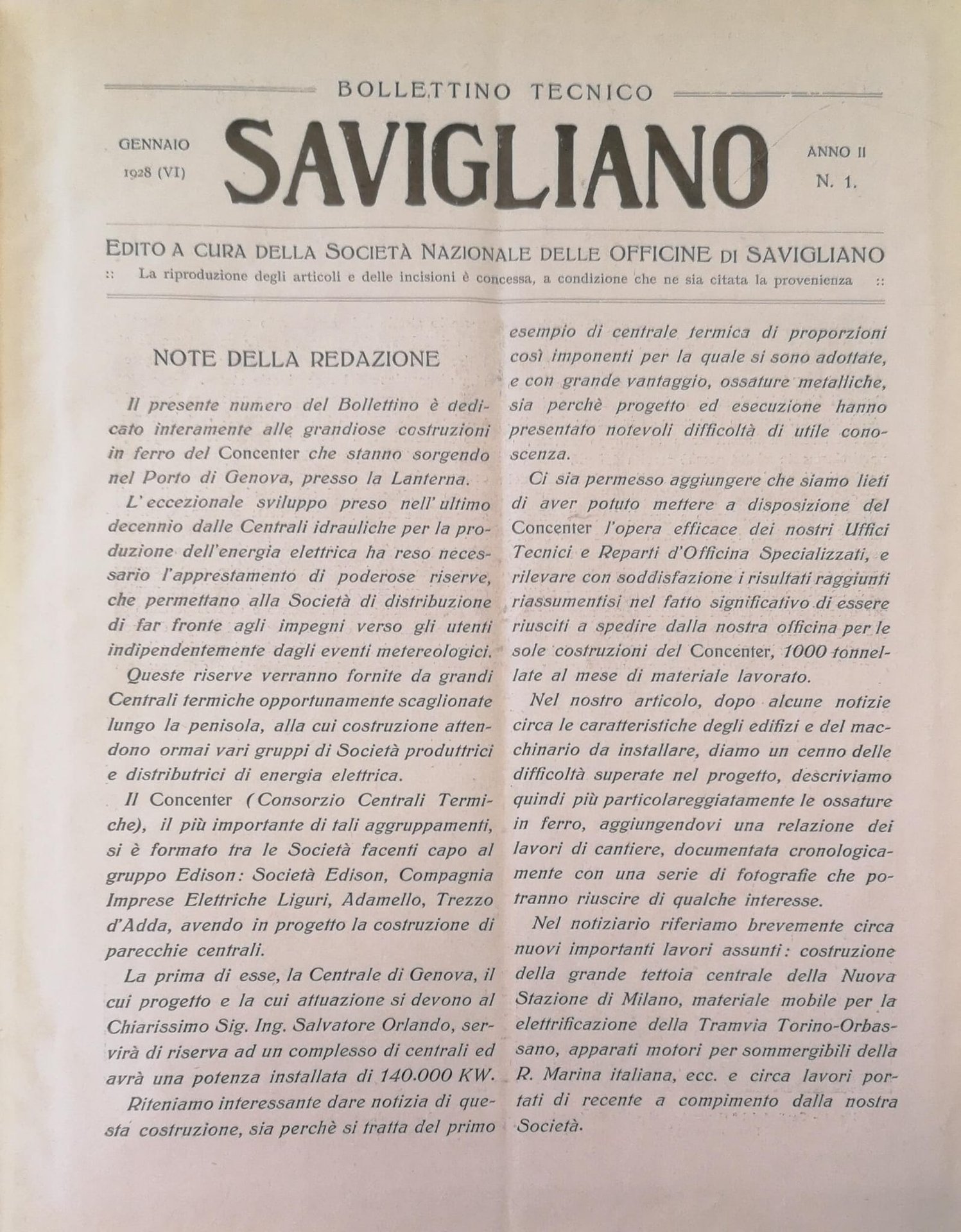 BOLLETTINO TECNICO SAVIGLIANO. - Edito a cura della Società Nazionale delle Officine di Savigliano.