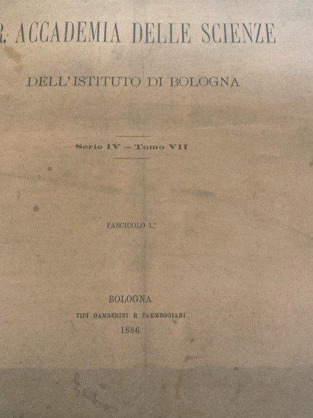 <p>CODICE 211 SCATOLA 1</p>, , <p>PAGINE 202 ILLUSTRATO CON NUMEROSE TAVOLE ILLUSTRATE</p>, , <p>MEMORIE DELLA R.ACCADEMIA DELLE SCIENZE DELL'ISTITUTO DI BOLOGNA SERIE IV TOMO VII FASCICOLO 1 BOLOGNA TIPI GAMBERINI E PARMEGGIANI 1886 </p>,