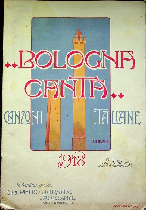 51, [8] p., 30 cm, bross. Condizioni : USATO - Stato : Buono, ordinari segni d'uso e del tempo. Altre note : Oltre al testo e musica di 16 canzoni contiene 14 poesie in bolognese di Ugo Ghillini.