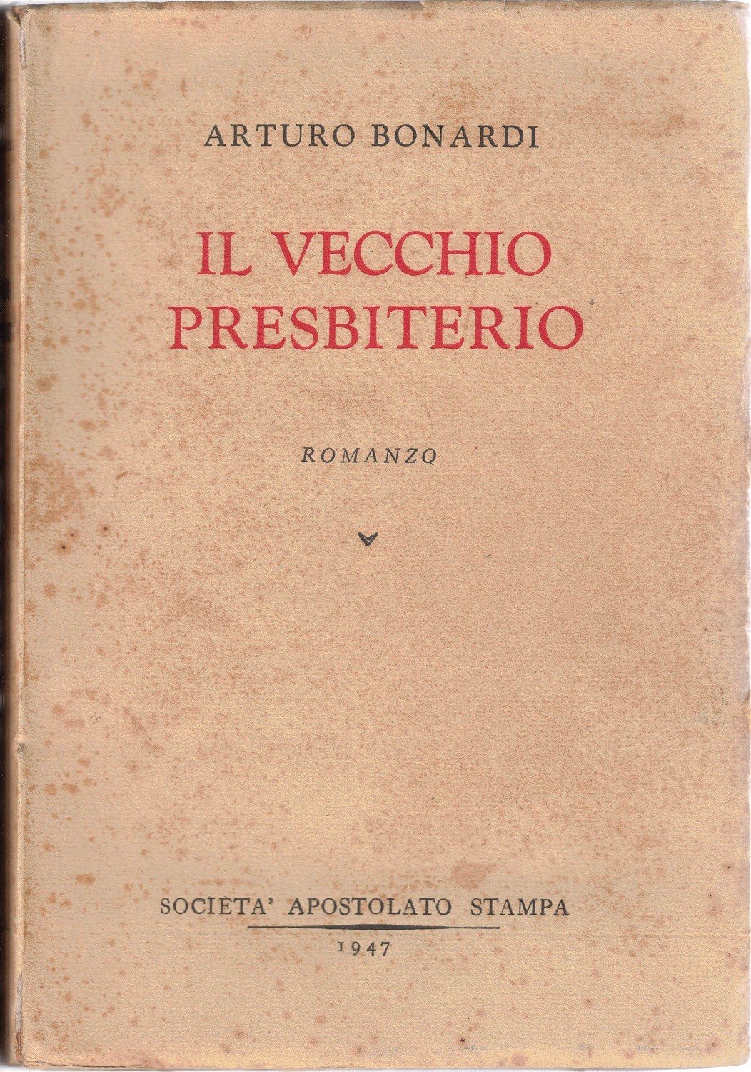 Arturo Bonardi, Il vecchio presbiterio. Per l’oggi e per il domani, Società Apostolato Stampa, s.l. (ma stampato a Roma, presso la Tip. della Pia Soc. San Paolo) 1947, pp. 456, cm 23, br. ed. Sottotitolo alla prima di copertina: Romanzo. Leggere tracce d’uso ala brossura, ordinari segni del tempo, per il resto esemplare ben conservato.
