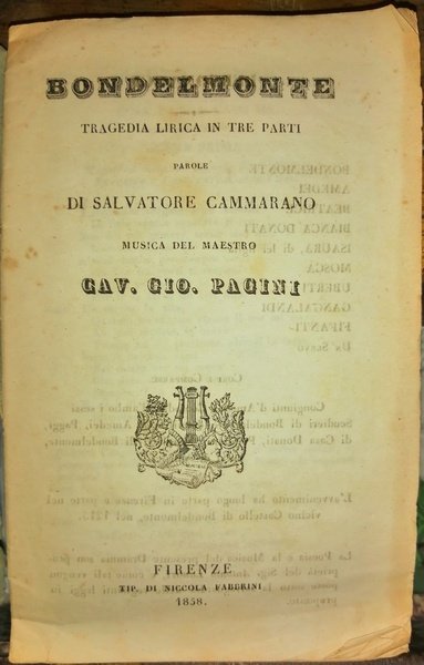Bondelmonte: tragedia lirica in tre parti, parole di Salvatore Cammarano; musica del maestro cav. Gio. Pacini