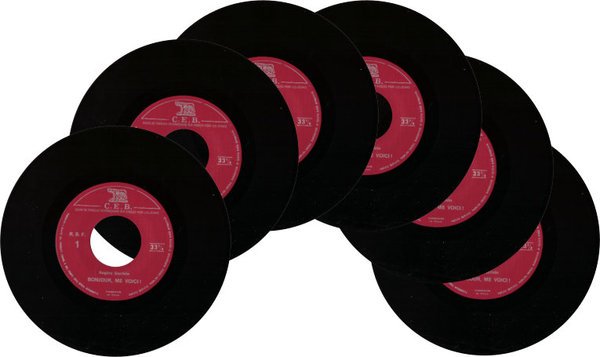 Course de Francais elementaire sur disques pour les jeunes par Jamer McAllister.Comprende 6 dischi in vinile un piccolo dizionario di 28 pagine.