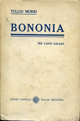 In-8°, pp. 425, (5), brossura editoriale. Dedica a stampa al Podestà di Bologna, Leandro Arpinati. Bell'esemplare in barbe e a fogli chiusi. Prima edizione di questo lungo poema celebrativo della fondazione e della storia antica di Boogna. Il Murri (Fermo, 1874-1931), avvocato di spicco, direttore del periodico socialista 'La Squilla' e figlio del grande clinico Augusto, aveva ottenuto fama, piuttosto che per meriti letterarî, per il suo coinvolgimento in un clamoroso caso di cronaca nera, allorché, il 2 settembre del 1902 fu scoperto a Bologna il cadavere del conte Francesco Bonmartini, marito di Linda, figlia primogenita di Augusto Murri, che denunciò per l'uccisione proprio il figlio Tullio. Condannato a trent'anni per omicidio premeditato, Tullio Murri evitò l'ergastolo per varie circostanze attenuanti (il delitto ispirò il film di Mauro Bolognini 'Fatti di gente perbene'). Dopo 17 anni di prigionia, Tullio compose il suo libro più famoso, 'Galera', allo scopo di sensibilizzare la pubblica opinione sulle inaccettabili condizioni delle carceri italiane.