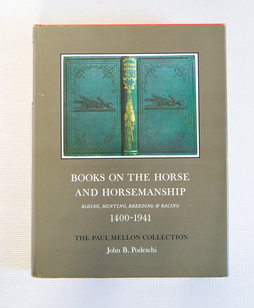 Il costante interesse di Paul Mellon per i cavalli purosangue e la sua reputazione di appassionato bibliofilo, si riflettono in questa stupenda collezione che descrive l'evoluzione del cavallo domestico ed il suo impiego in pista e per la caccia. I 470 libri selezionati sono sistemati cronologicamente (con indice) e le loro collazioni sono estremamente minuziose con speciale attenzione per le tavole e il materiale decorativo. 43 descrizioni di periodici seguono i libri. È una stupenda e utilissima bibliografia, arricchita da circa 400 illustrazioni e da 18 tavole a colori.