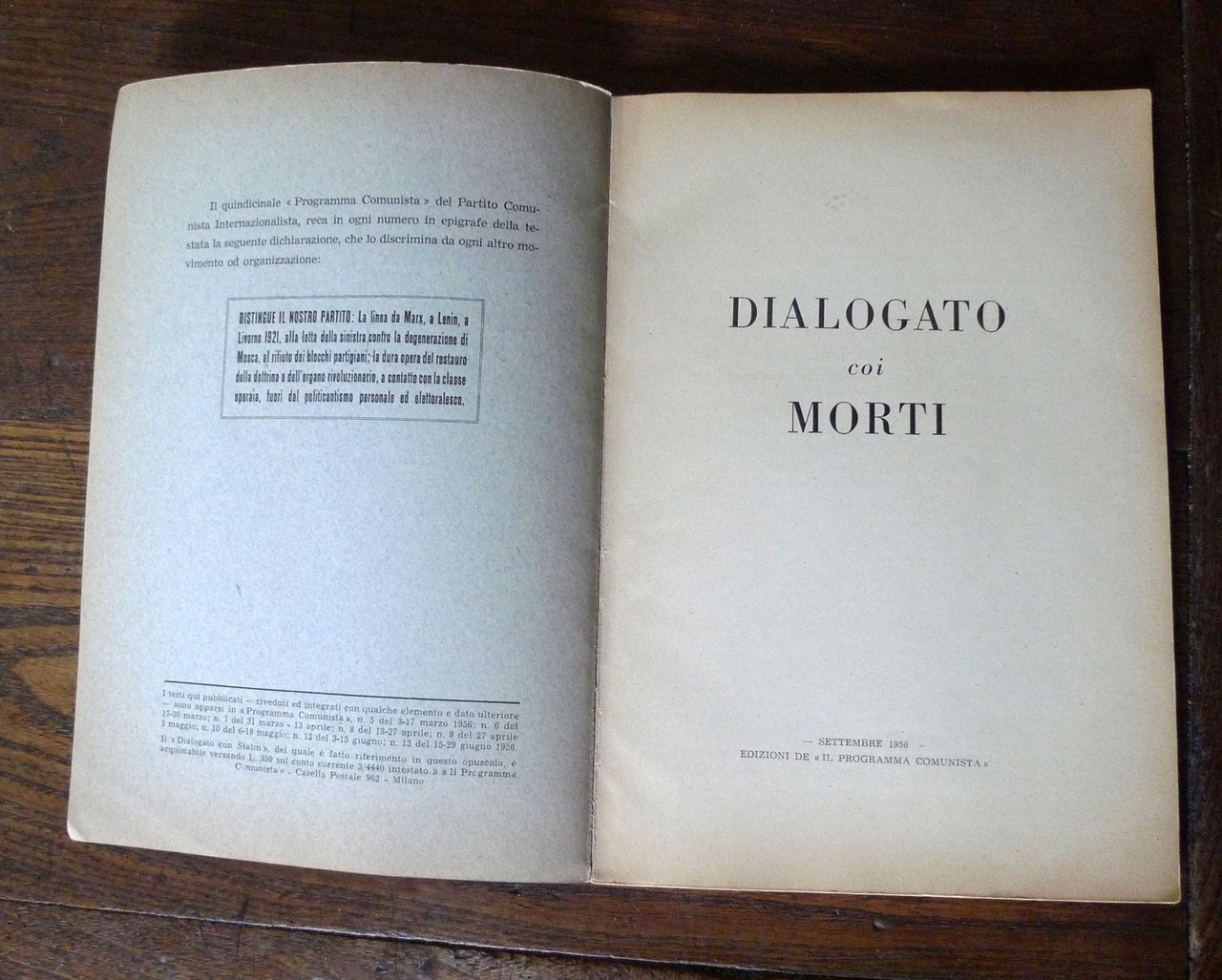 [Amadeo Bordiga]DIALOGATO COI MORTI.IL XX CONGRESSO DEL PARTITO COMUNISTA RUSSO.Edizioni de "Il programma comunista" del Partito Comunista Internazionalista, Milano settembre 1956,brossura, 24,5x17 cm., pp.152,peso: g.350cod.9915CONDIZIONI DEL LIBRO: buone,copertina e pagine ingiallite