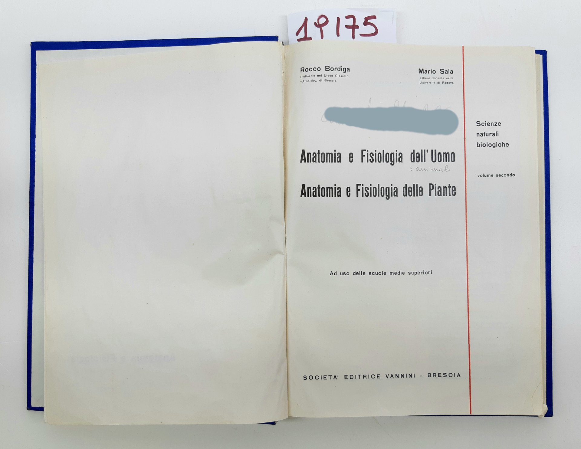 Bordiga Sala Anatomia e fisiologia dell'uomo . delle piante ad uso delle scuole medie superiori Vannini 1957