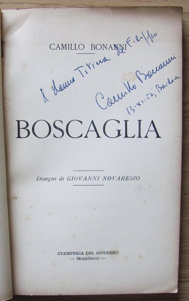 Dedica autografa dell?autore a Titina De Filippo al frontespizio. 8 tavole in b/n f.t. di Giovanni Novaresio. Stamperia del Governo - Mogadiscio, I edizione 1957. Brossura editoriale. 14x21; pp.109. Raro, Ottimo stato. , Buono (Good)