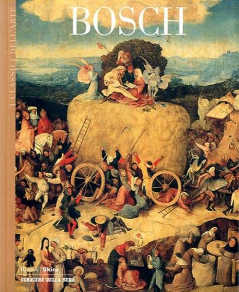 189 p. : ill. ; 21 x 17 cm. I classici dell'arte, 28. Monografia sull'arte di Hieronymus Bosch (1453-1516), pittore olandese. Le sue opere si distinguono per a ricchezza di inventiva, vere e proprie visioni, che hanno chiamato in causa dottrine diverse, tra esse la psicoanalisi, ciascuna delle quali dette una propria lettura, talvolta anche non compatibile storicamente. Sicuramente la sua opera andò di pari passo con le dottrine religiose e intellettuali dell'Europa centro-settentrionale che, al contrario dell'Umanesimo italiano, negavano la supremazia dell'intelletto, ponendo piuttosto l'accento sugli aspetti trascendenti e irrazionali: ne sono esempio le prime elaborazioni di Martin Lutero e le opere di Sebastian Brandt ed Erasmo da Rotterdam. Con grande ironia, Bosch mise in scena i conflitti dell'uomo rispetto alle regole imposte dalla morale religiosa, quindi la caduta nel vizio e il destino infernale per redimersi dal quale appare il riferimento alle vite dei santi, attraverso l'imitazione della loro vita dedita alla meditazione anche se circondati dal male, sia nelle tavole con la Passione di Cristo, attraverso la meditazione sulle pene sofferte dal Cristo, per riscattare dal peccato universale il genere umano, che porta all'immedesimazione stessa del riguardante e alla salvezza. Presentazione di Dino Buzzati. A cura di Franca Varallo. Edizione speciale per il Corriere della Sera. Brossura editoriale, coperta illustrata a colori in cartoncino flessibile patinato opaco con alette. All'interno numerose illustrazioni in b/n e a colori su carta patinata lucida. Codice libreria 6259.