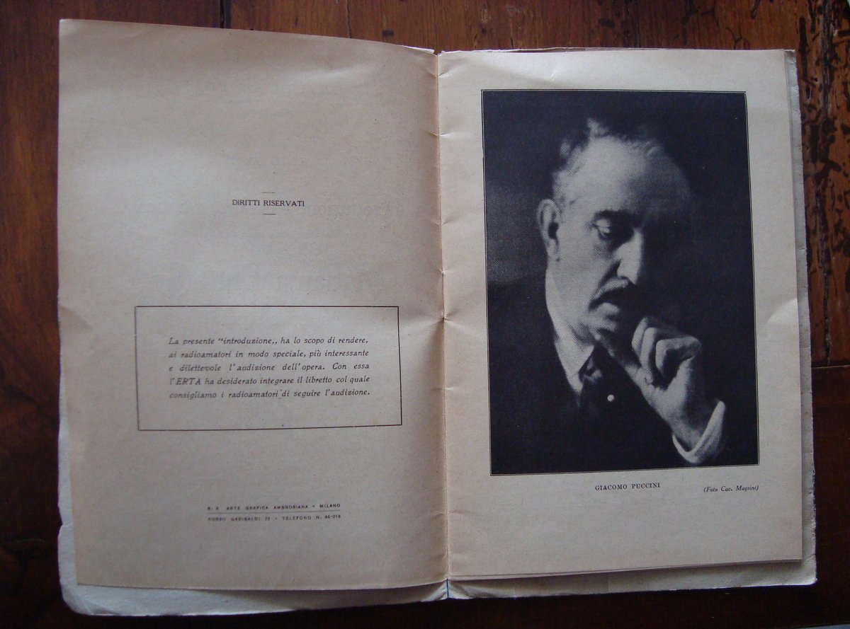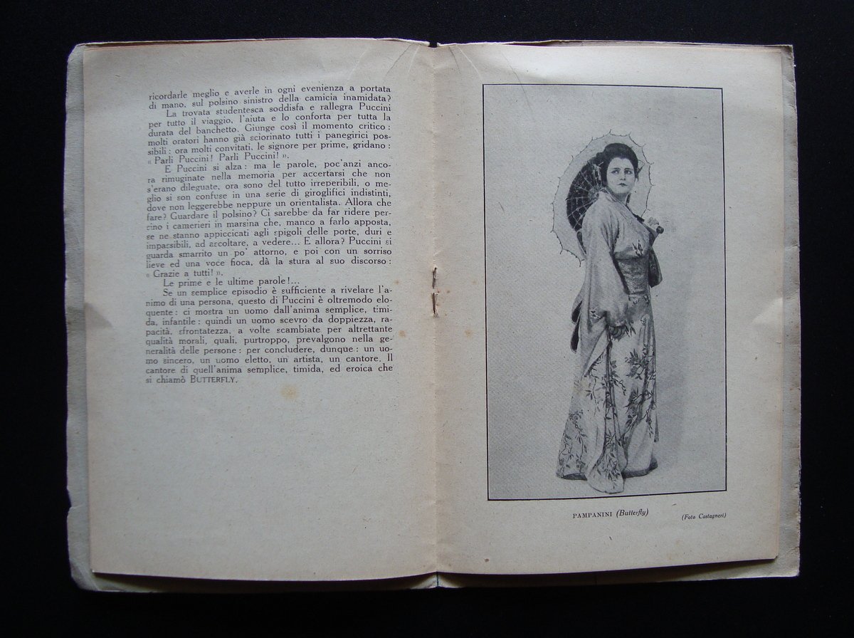 Renzo Bossi, Teatro Lirico N.102 Introduzione biografica e critica della BUTTERFLY di Giacomo Puccini PRIMA EDIZIONE Erta, Milano, 1932, Collana Teatro Lirico N.102; cm 20 x 14, pp. 30, brossura con ill.fot. b/n in testo + 5 tavole b/n; Prima Edizione. Condizioni di conservazione: buono stato con tracce d'uso e del tempo, brossura con macchiette, piege e brunitureagli angoli e ai margini; interni con poche piccole macchiette. Introduzioni biografiche e critiche con fotografie delle scene e dei costumi del Teatro alla Scala OPEB.3348 BLU