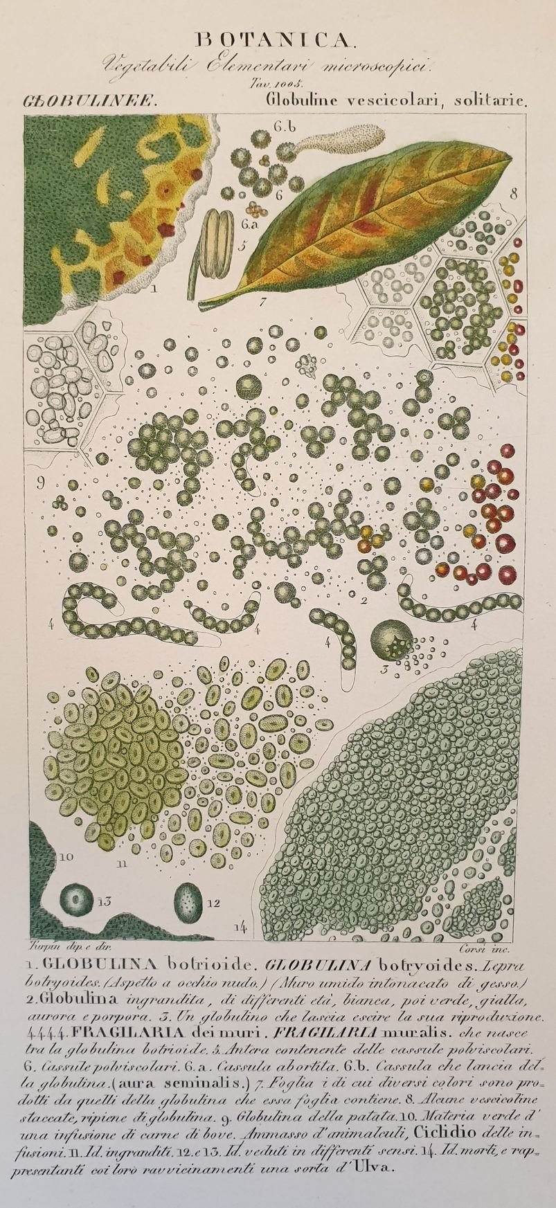 INCISIONE: Litografia con coloritura coeva all'acquarello AUTORE: Corsi su disegno di Turpin ATLANTE: Dizionario di scienze naturali, Firenze Battelli 1831 DIMENSIONI FOGLIO: cm 25,5x17,5 DIMENSIONI INCISIONE: cm 15,5x9 EPOCA: 1831 circa CONDIZIONI: buone condizioni Quest'opera imponente era composta da 29 volumi ed era corredata da centinaia di incisioni che rappresentavano tutto il mondo animale e vegetale. L'opera deriva da un eccellente lavoro di luminari del XVIII secolo supportati dal Re francese Louis XV in seguito guidati dallo stesso Turpin, considerato al tempo il più grande incisore di botanica.<BR>La maggior parte delle incisioni sono firmate Turpin & Pretre.<BR>Carta bianchissima e resistente di ottima qualità.ENGRAVING: Lythograph with coeval colouring with acquarello painting AUTHOR: Corsi after Turpin ATLAS: Dizionario di scienze naturali, Firenze Battelli 1831 SIZE OF PAGE: cm 25,5x17,5 SIZE OF THE ENGRAVING: cm 15,5x9 PERIOD: 1831 circa CONDITIONS: good condition This imponent work was made up by 29 volumes and contained hundreds of engravings that represented all the plant and animal kingdom. This work derives from an excellent work of luminaries of the 18th century supported by the french King Louis XV and then directed by the same Turpin that was considered as the greatest botanical engraver of his time. The most of his engravings are signed Turpin & Pretre.<BR>Very white strong paper of good quality.