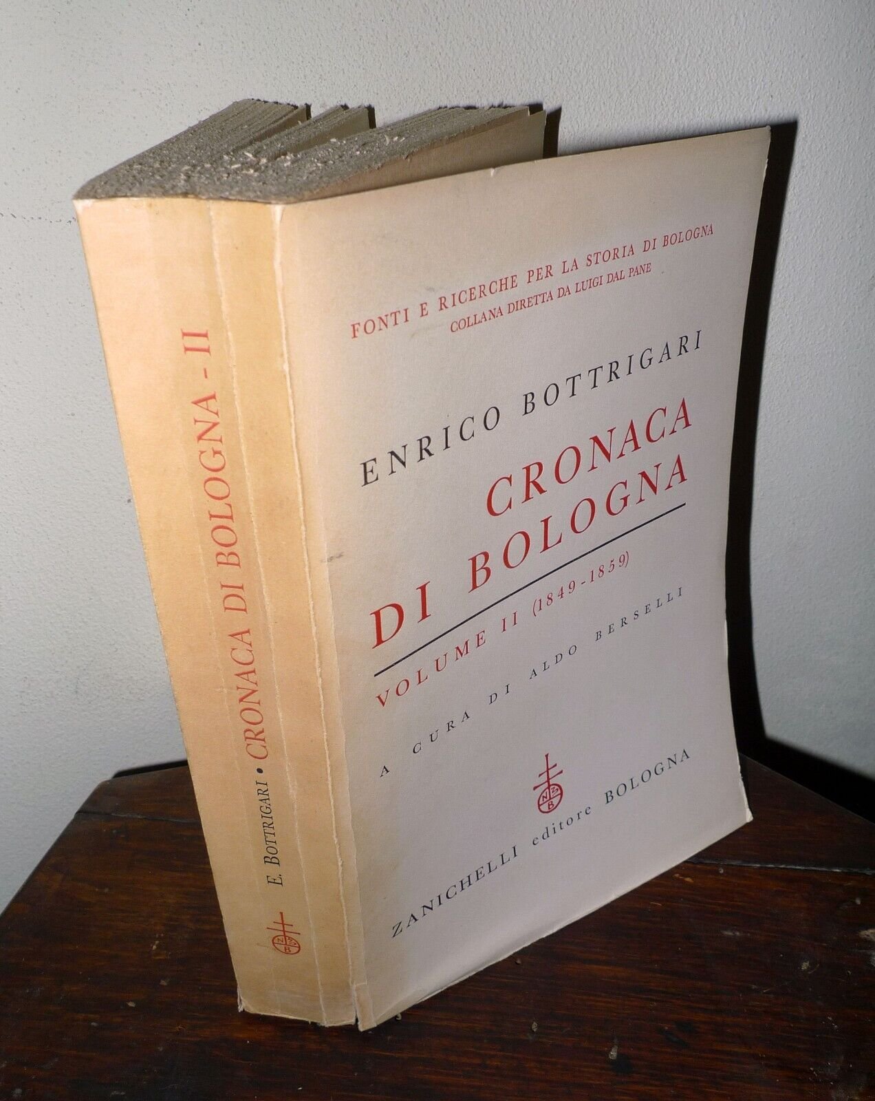 Enrico Bottrigari,CRONACA DI BOLOGNAVOLUME II (1849-1859).A cura di Aldo Berselli.Zanichelli Editore, Bologna 1960,brossura, 24x16 cm., pp.547,alcune illustrazioni in bianco e nerosu tavole in carta patinata fuori testo,FONTI E RICERCHE PER LA STORIA DI BOLOGNA,collana diretta da Luigi Dal Pane,peso: g.950