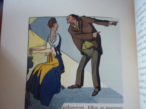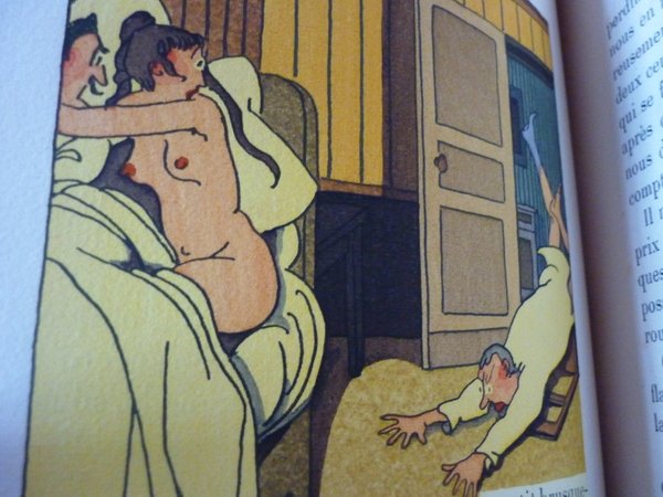 174 pp., bien complet mais les cahiers sont reliés à l'envers. On commence bien par le premier mais le second est en fin de volume, le troisième est pénultien, le quatrième antépénultien et ainsi de suite. La reliure est signée "Julius Ligator", les couv. sont cons. Magnifiques illustrations coul. de HEMARD, dont certaines très "canailles". Un des 750 sur Vélin de Rives. "Le Livre du Bibliophile"