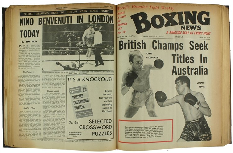 BOXING NEWS. Volume 26 (1970) nearly complete (49 of 52 issues bound together). World's Premier Fight Weekly.