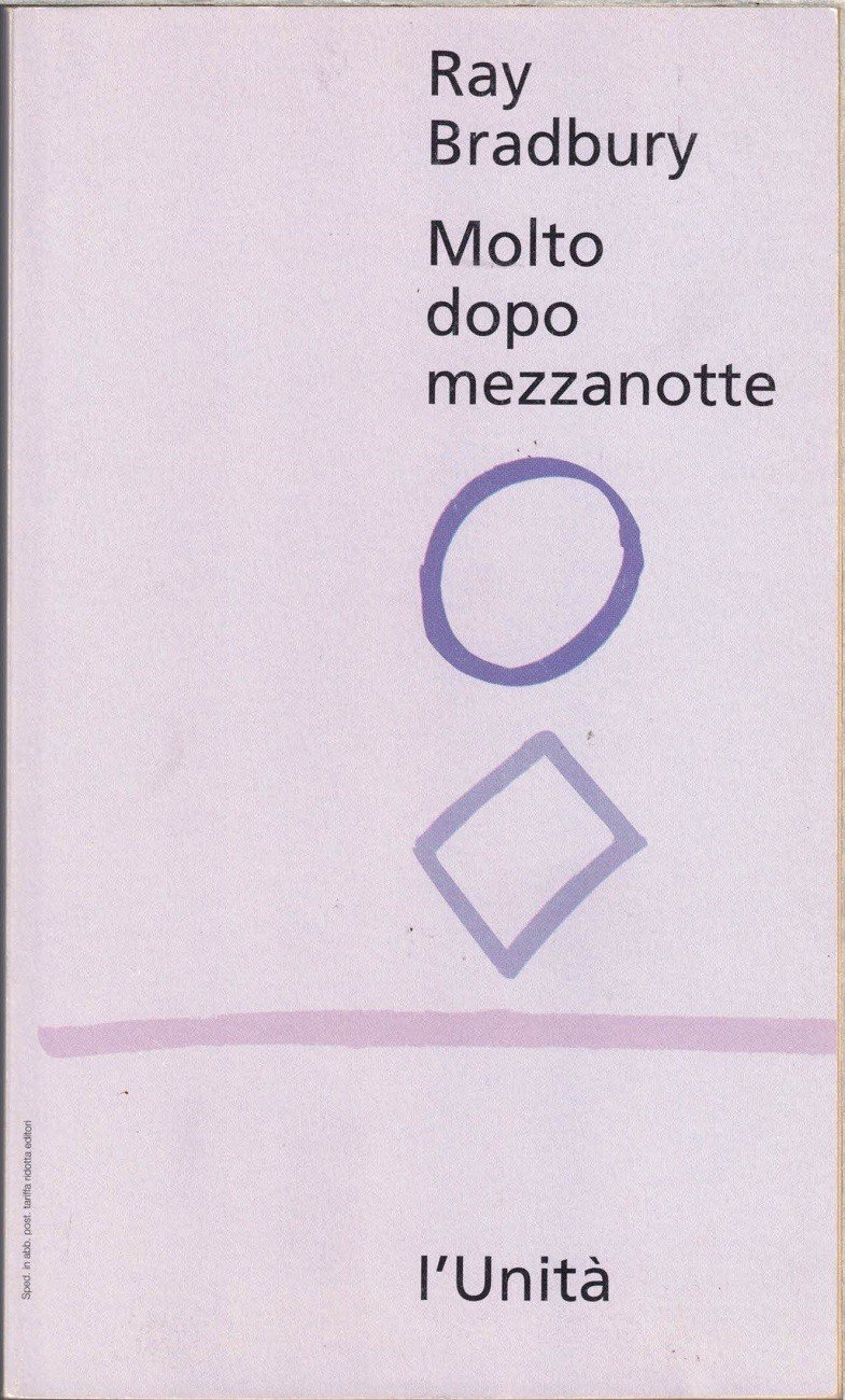 Ray Bradbury, Molto dopo mezzanotte, l’Unità, s.l. (ma stampato a Cles, presso lo Stab. AME NSM) 1993, pp. 323, cm 18, br. ed. Collana I libri dell’Unità. Serie L’ABC della fantascienza, vol. 7. Titolo originale: Long after mid night. Traduzioni di Antonangelo Pinna, Vanna Signorini, Manola Stanchi. Presentazione di Oreste Del Buono. Indice: La bottiglia azzurra – In trappola – Il pappagallo che conobbe papà – L’uomo che bruciava – Un pezzo di legno – Il Messia – Conversazioni nello spazio – Delitto senza castigo – Castigo senza delitto – Una domenica a Dublino – Un’insolita proposta – Viaggio in Messico – Tempo fermo – Il desiderio – Angelo, guarda il futuro – La vera saggezza – Breve storia del Quarto Reich – I miracoli di Jamie – Gioco d’ottobre – Il pan di segala – Molto dopo mezzanotte – Una tavoletta di cioccolato per te! Leggera brunitura della carta, per il resto perfetto.